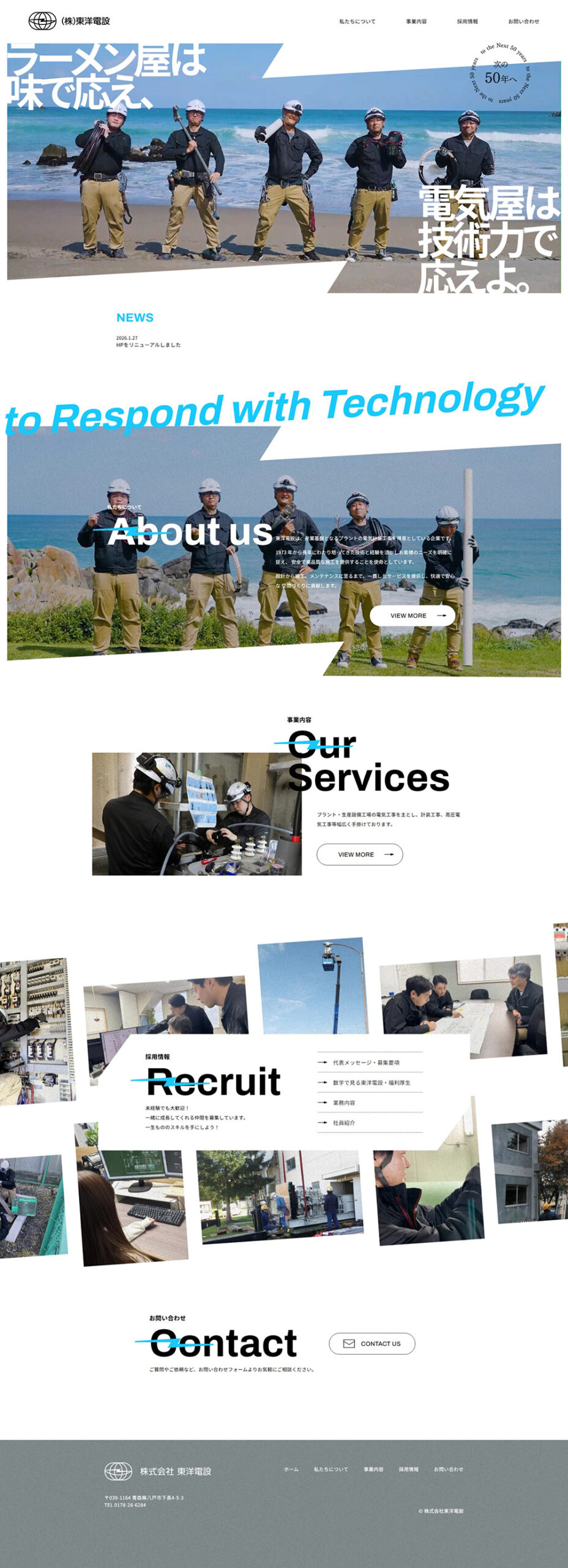 経営理念である「ラーメン屋は味で応え、電気屋は技術力で応えよ」 という力強いメッセージをトップに掲げ、企業としての姿勢と独自性を印象付ける構成としました。 また、従業員の笑顔を中心に撮影することで、「この会社で働きたい」と感じてもらえる温かさと人柄を表現。 他社にはない 唯一無二のデザインとストーリー性 を持つ採用向けホームページを制作しました。
